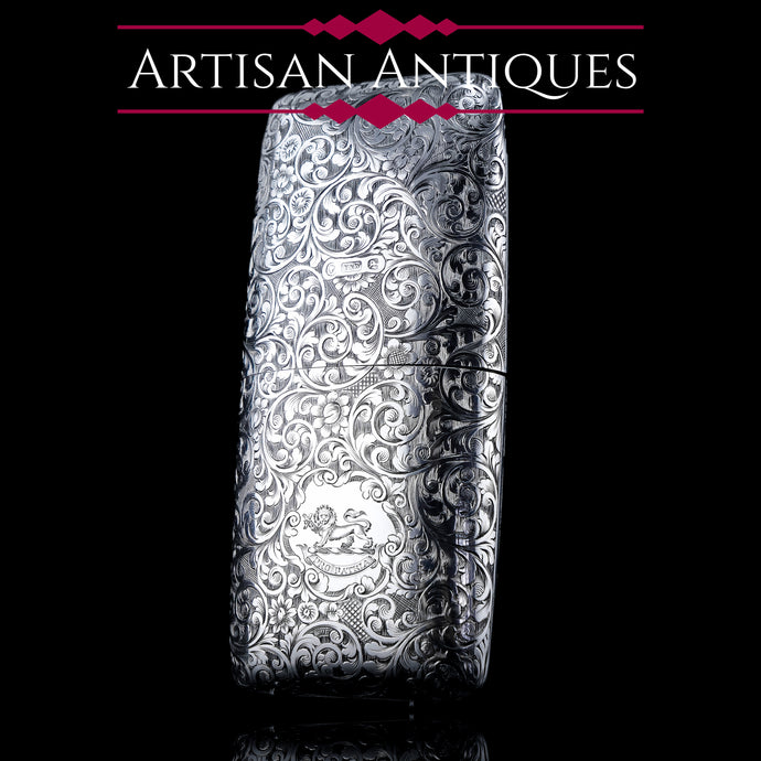 Antique Victorian Solid Silver Cigarette Case Wonderful Curve & Crested - London 1894