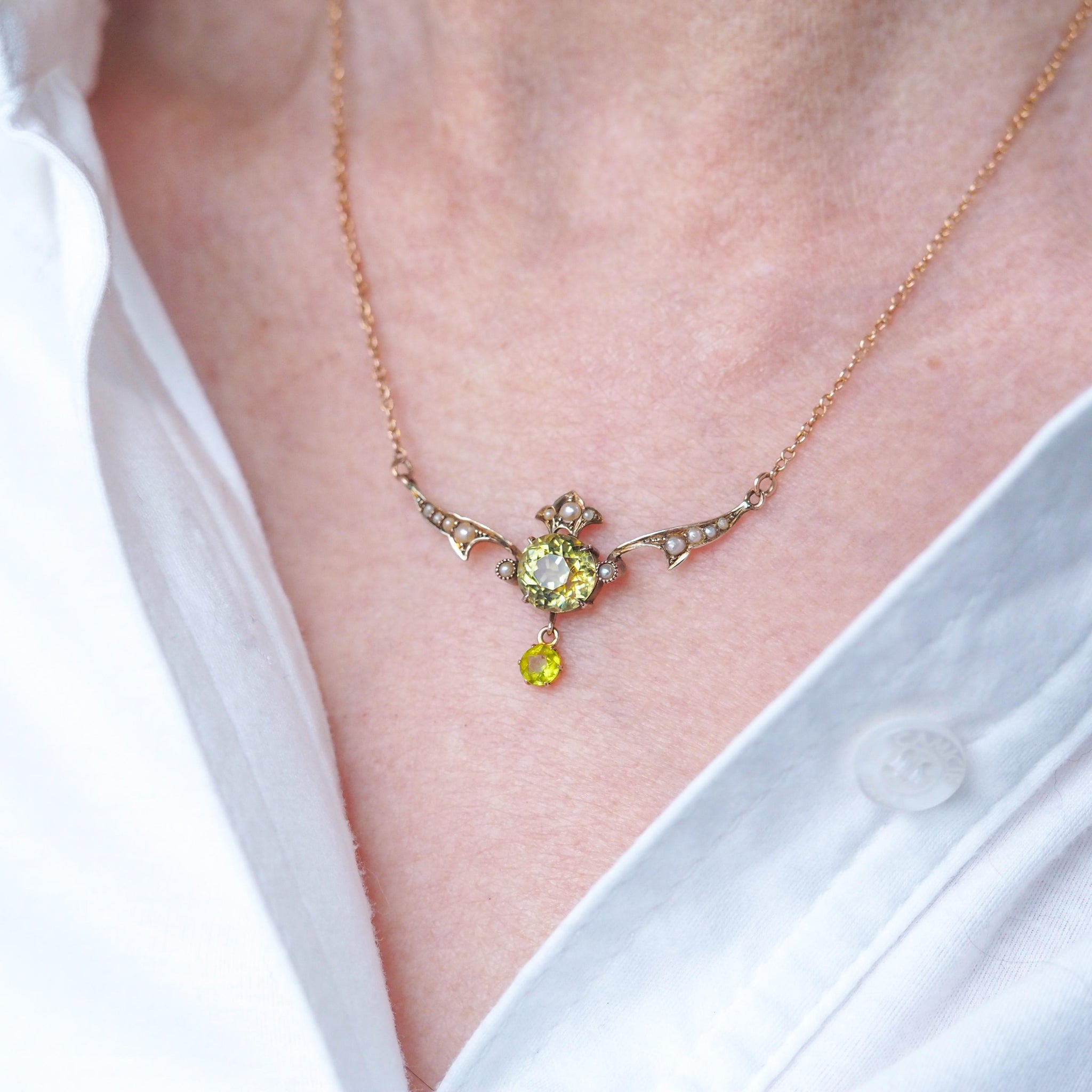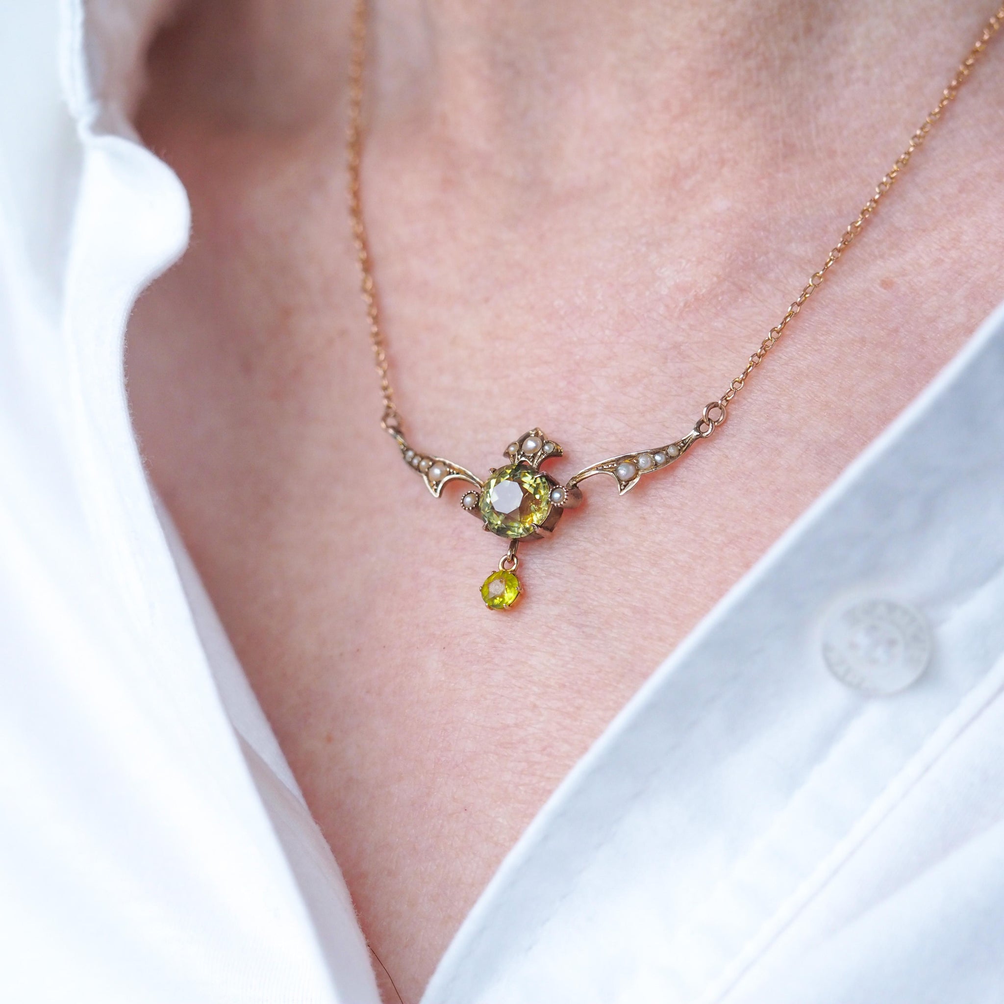 We are delighted to offer this splendid antique Edwardian peridot necklace made c.1900.