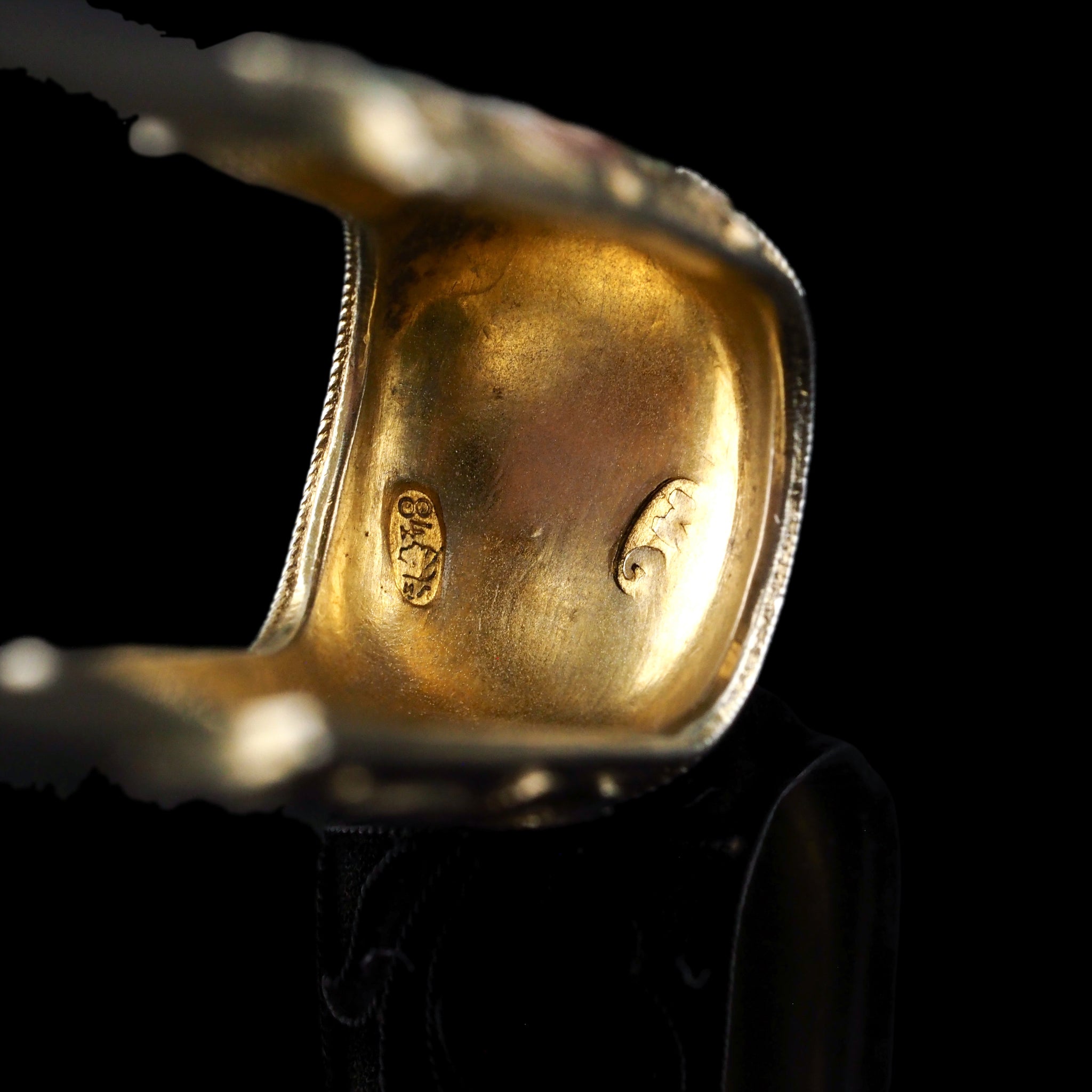 Such contrast and artistic juxtaposition between utility and ornamentation is particularly delightful on these pieces and serves as a wonderful aesthetic contrast in interior settings among other silverware or as a highlighting piece on a table. The colourful enamel and delicacy are almost jewel-like and would also gracefully complement jewellery collections.