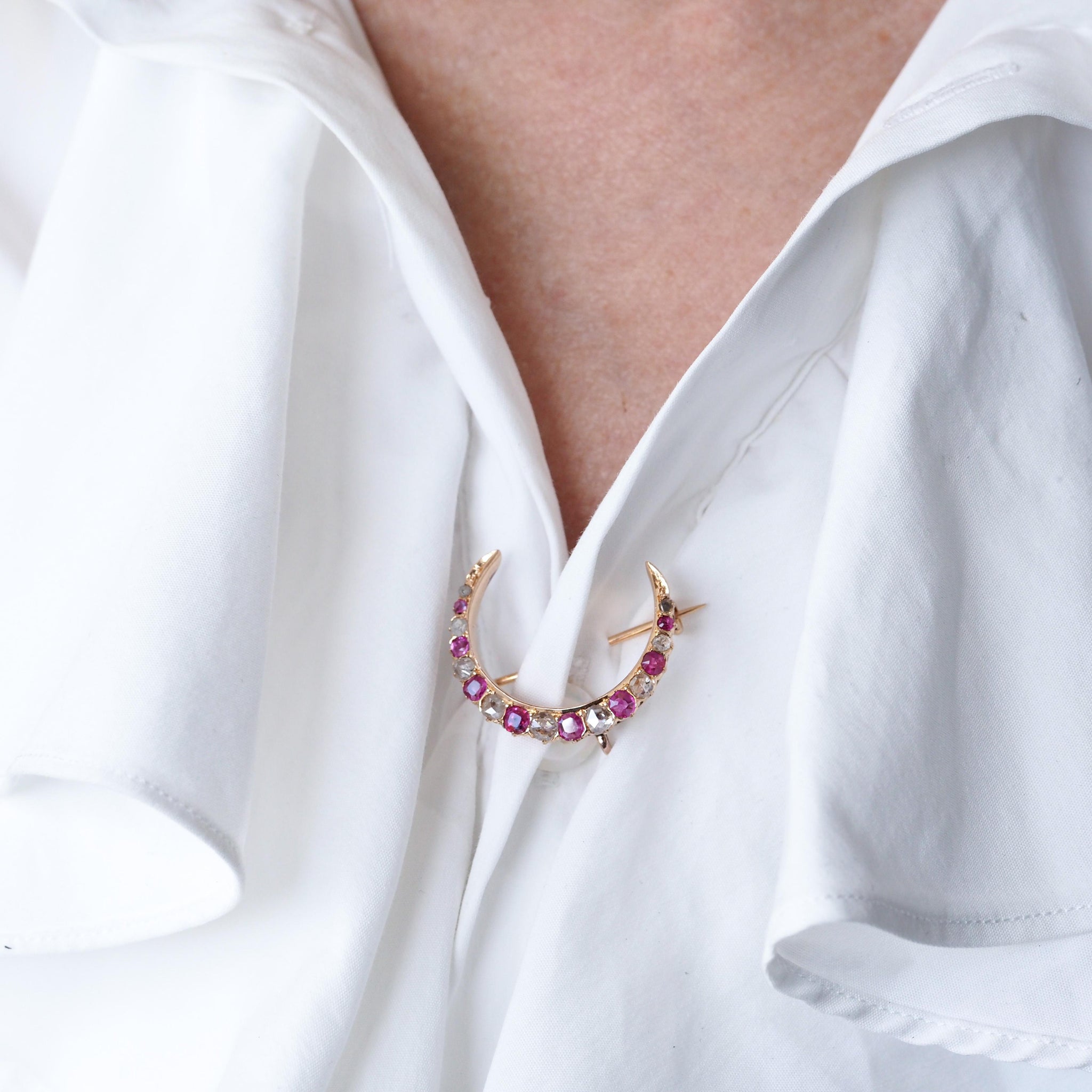 We are delighted to offer this exquisite antique Victorian 18ct gold ruby & diamond brooch c.1880.