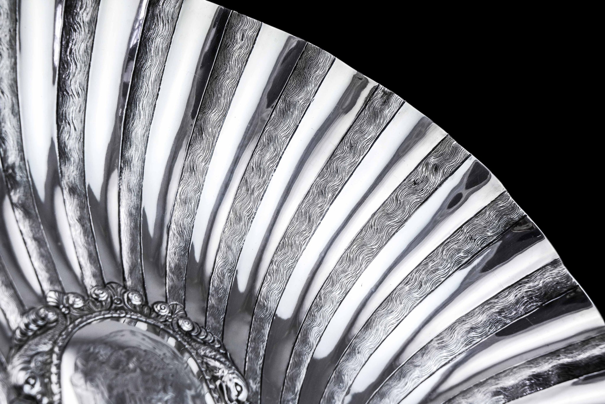 A Spectacular & Huge Antique Victorian Solid Silver Shell Basin Dish / Bowl (40cm+) - Hunt & Roskell, London 1846