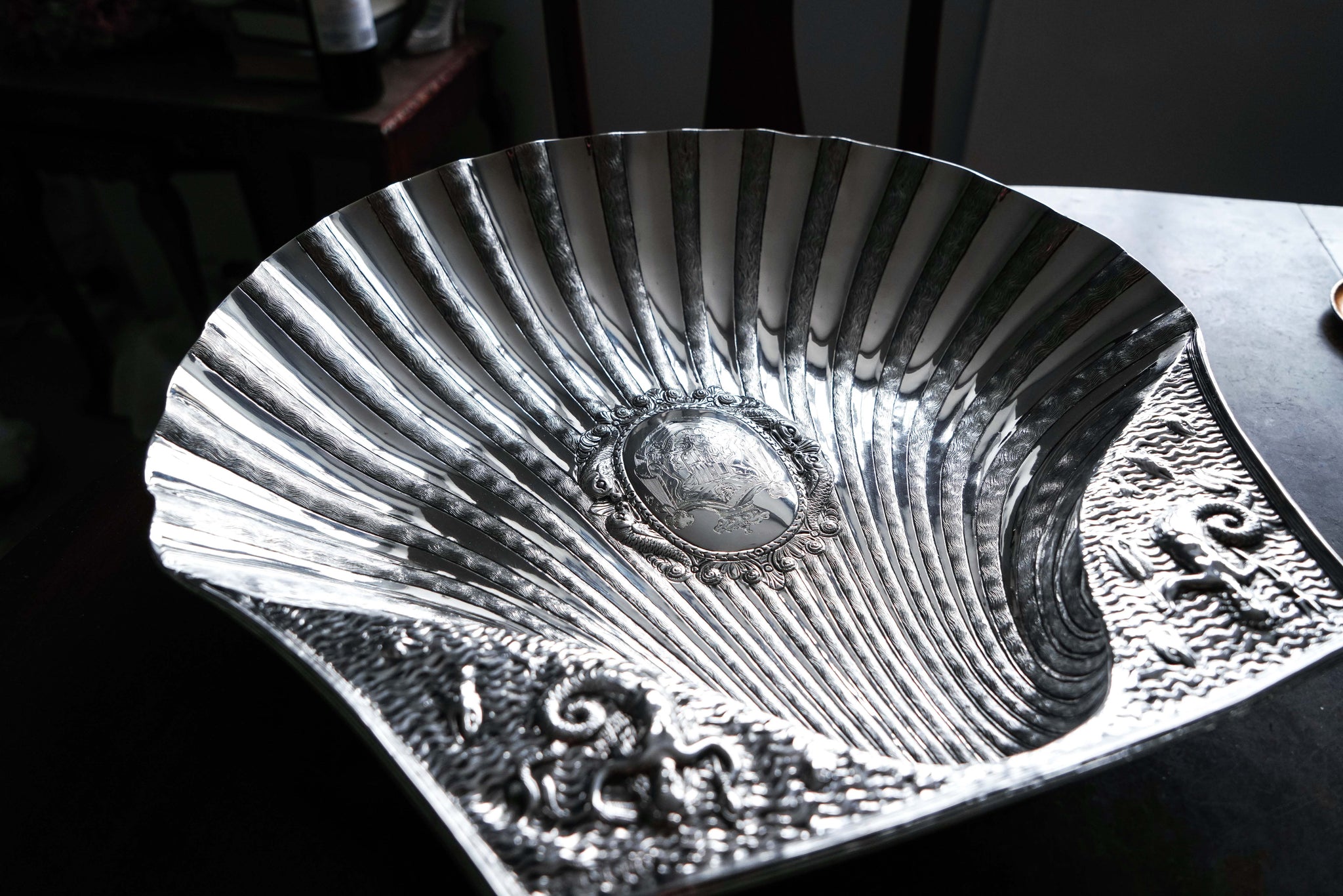 Owing to its size & breathtaking presence, this dish lends itself to be a fabulous piece of antique silverware, whether for interior decor or versatile usage. Placing this dish as a centrepiece on a dining table or perhaps on top of a sideboard or mounted on a wall would most certainly elevate the splendour of a setting.