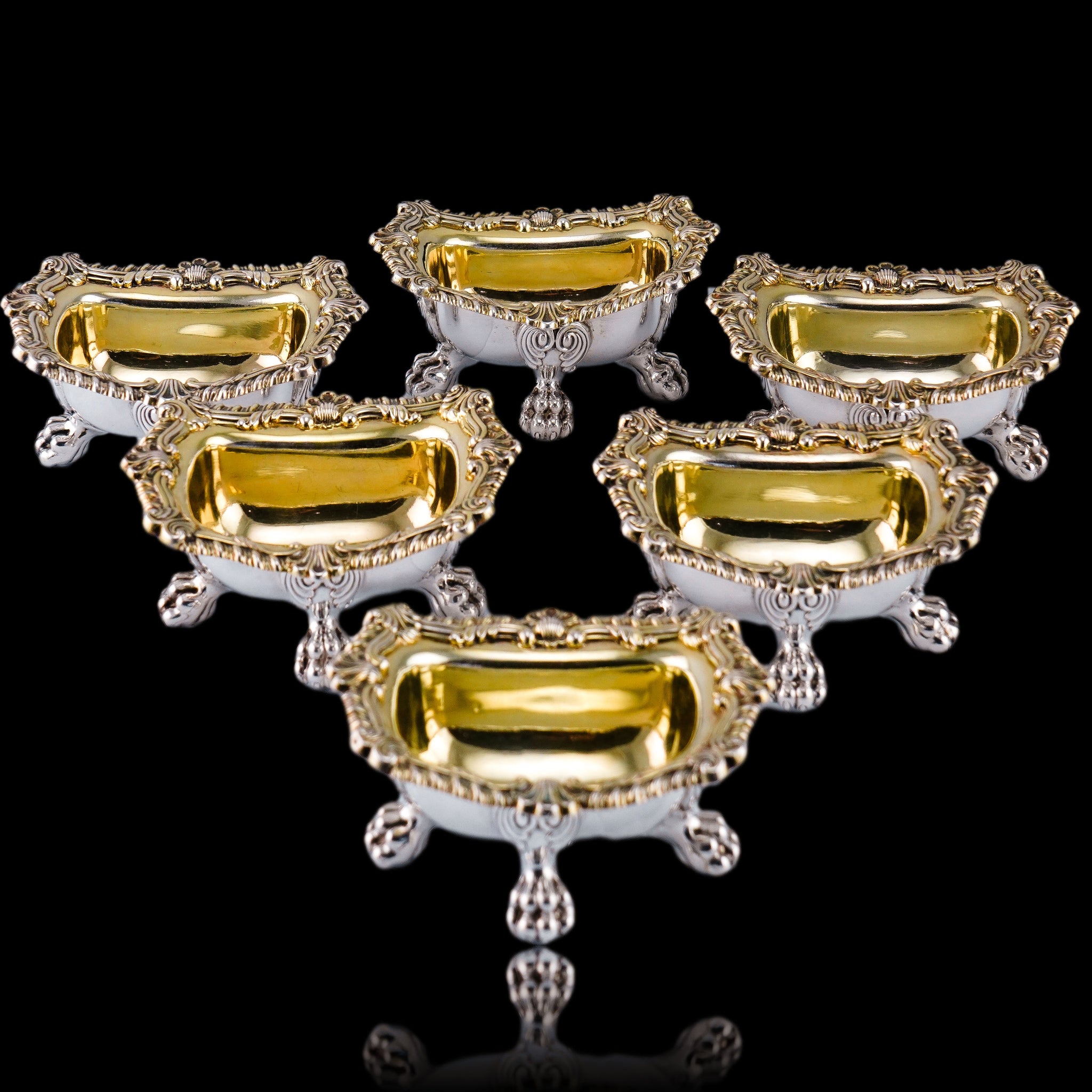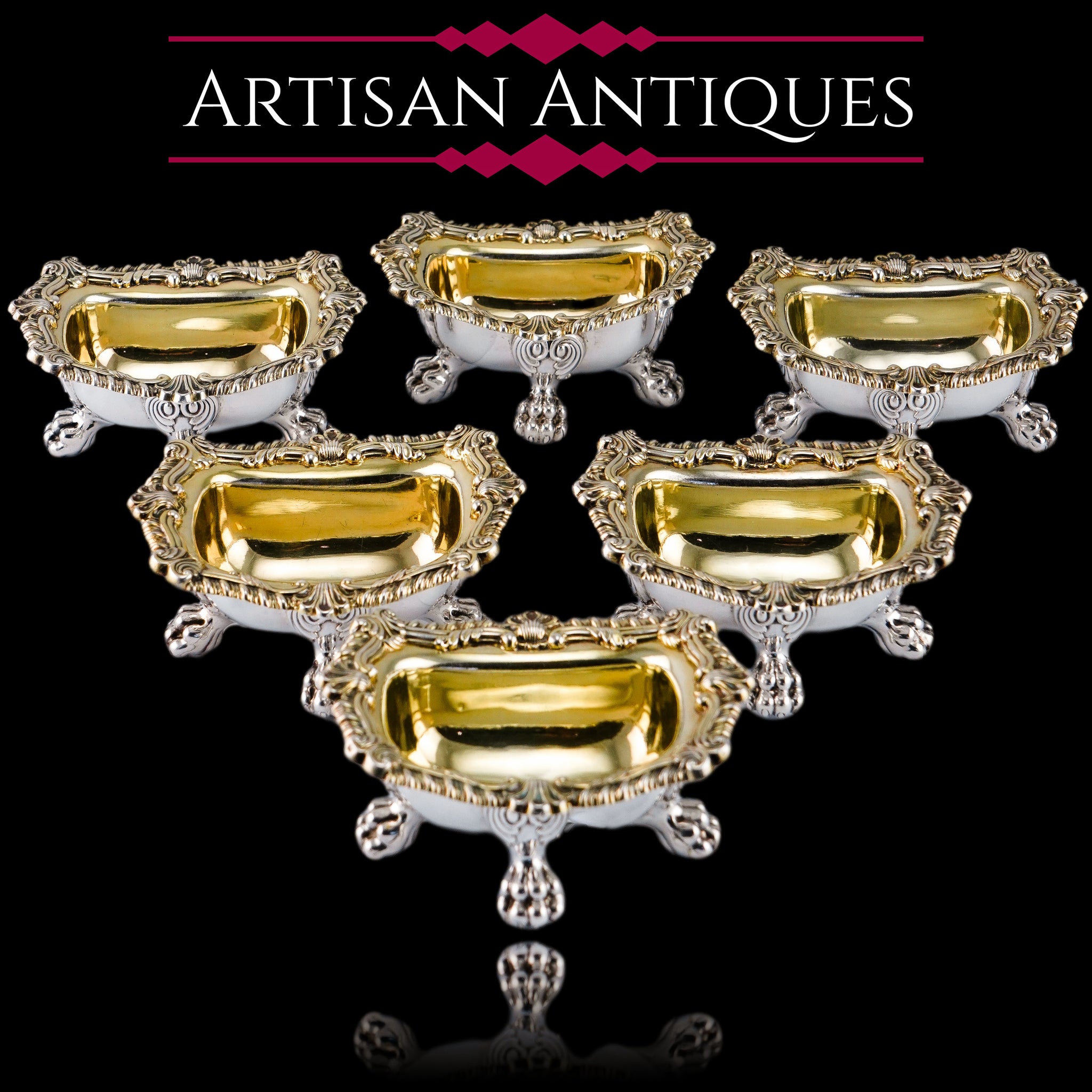 Magnificent Antique Georgian Solid Silver Salt Cellars Set of 6 Regency Design - Younge S & C & Co 1814/16