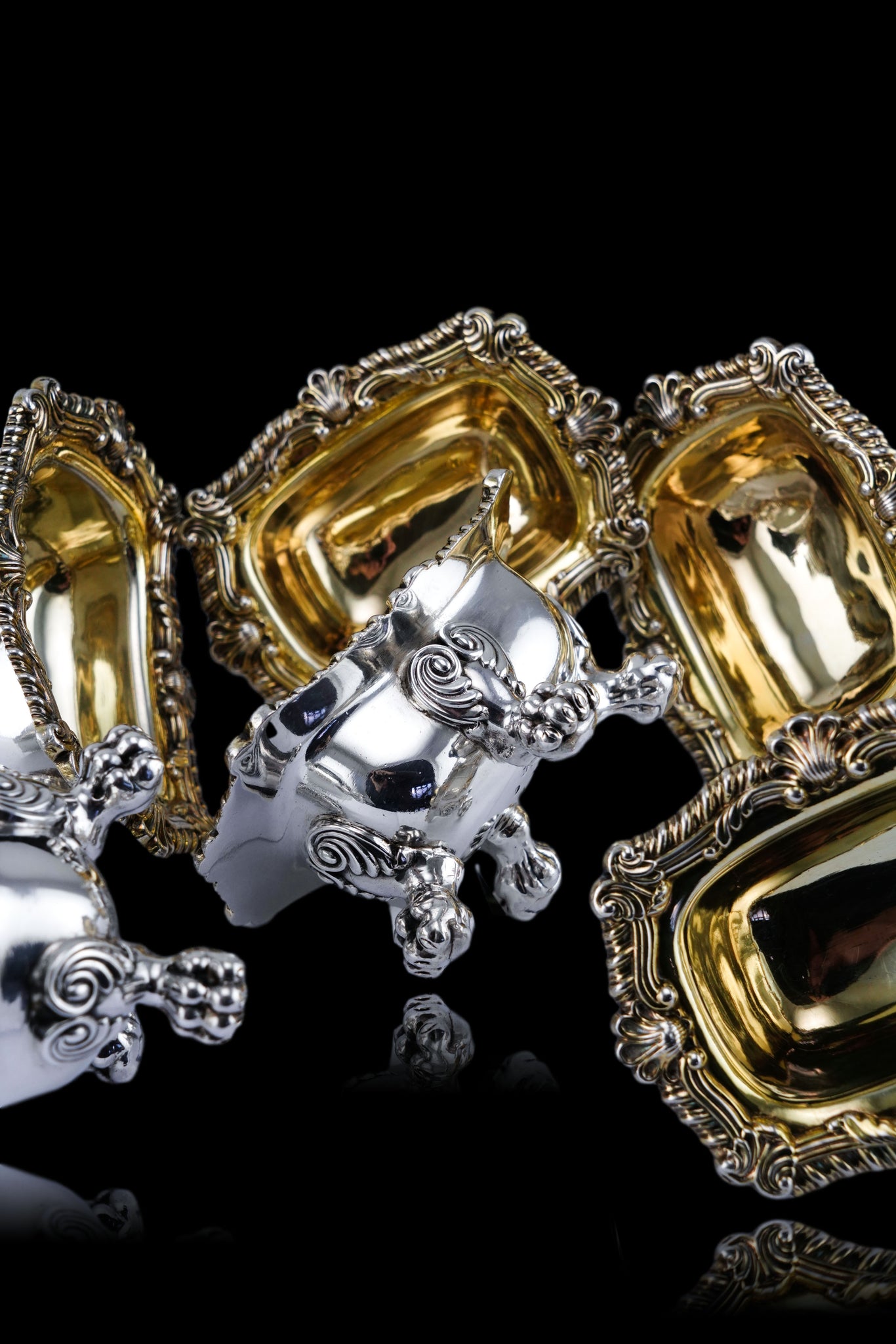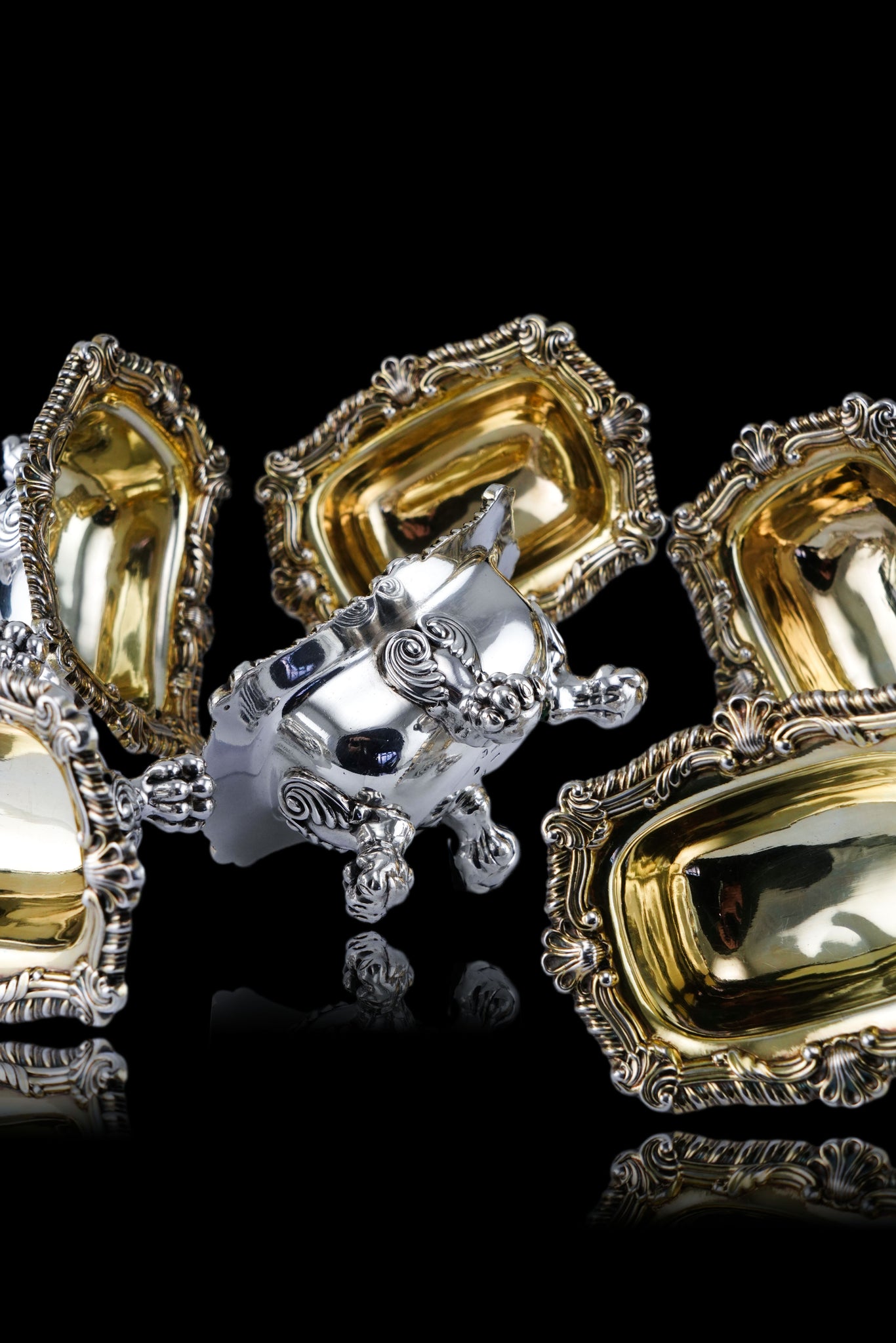 We are delighted to have acquired and offer this magnificent set of six salt cellars made by Younge S & C & Co in Sheffield, 1814/16 (4 and 2 identical from two years later).