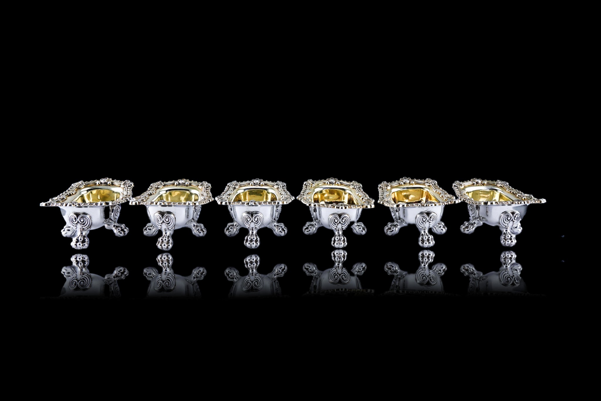 • Load image into Gallery viewer, Magnificent Antique Georgian Solid Silver Salt Cellars Set of 6 Regency Design - Younge S & C & Co 1814/16