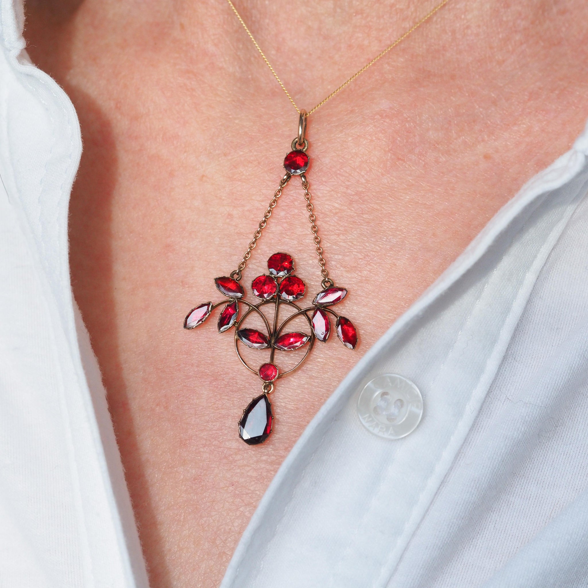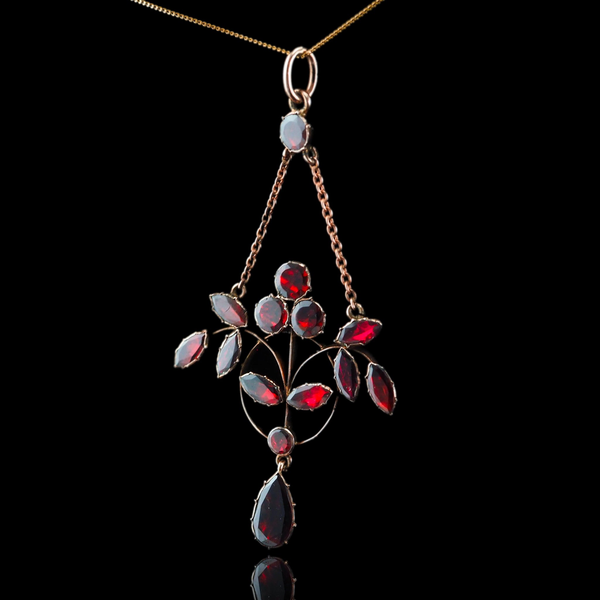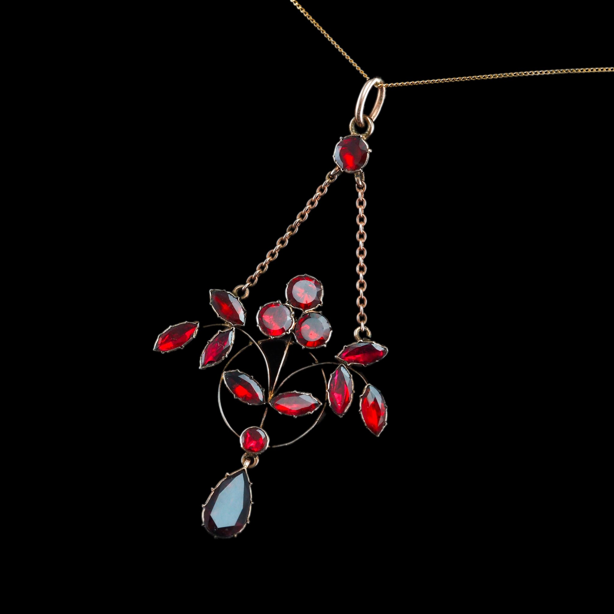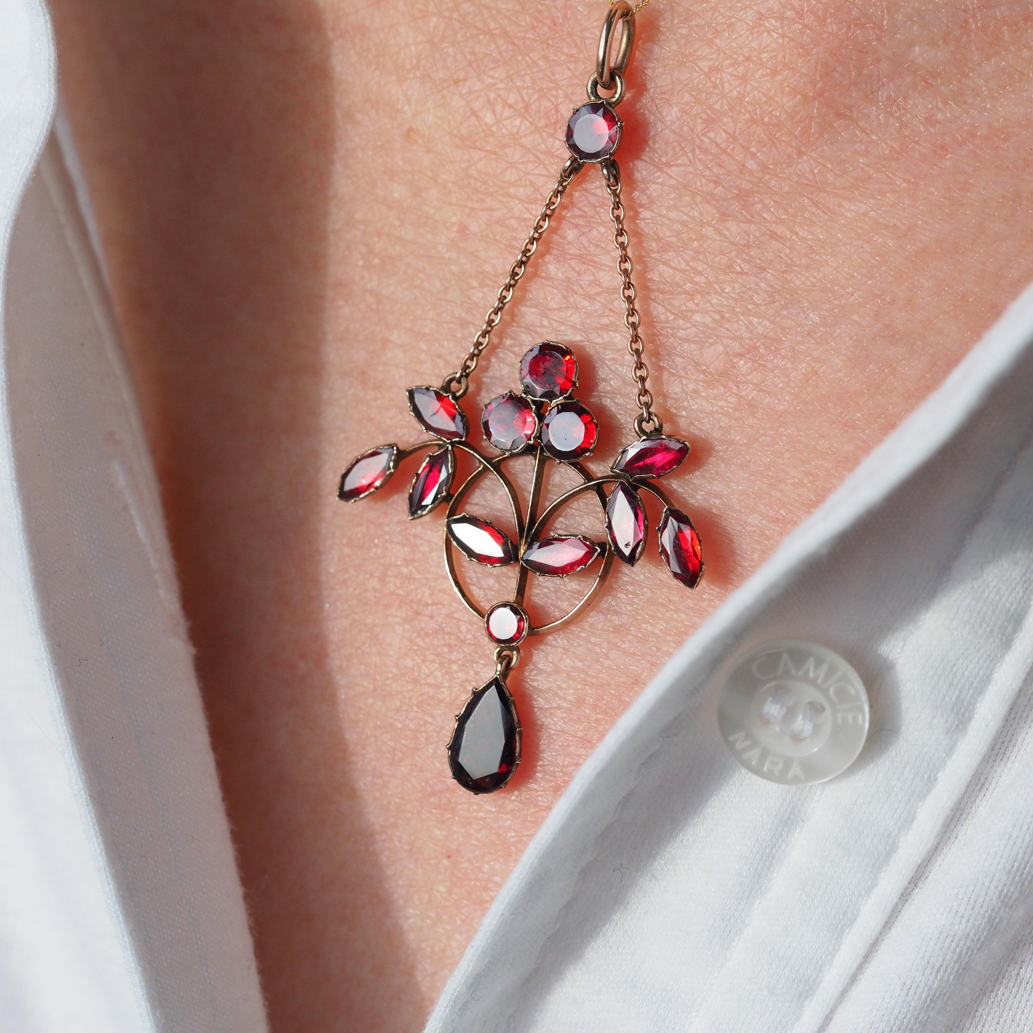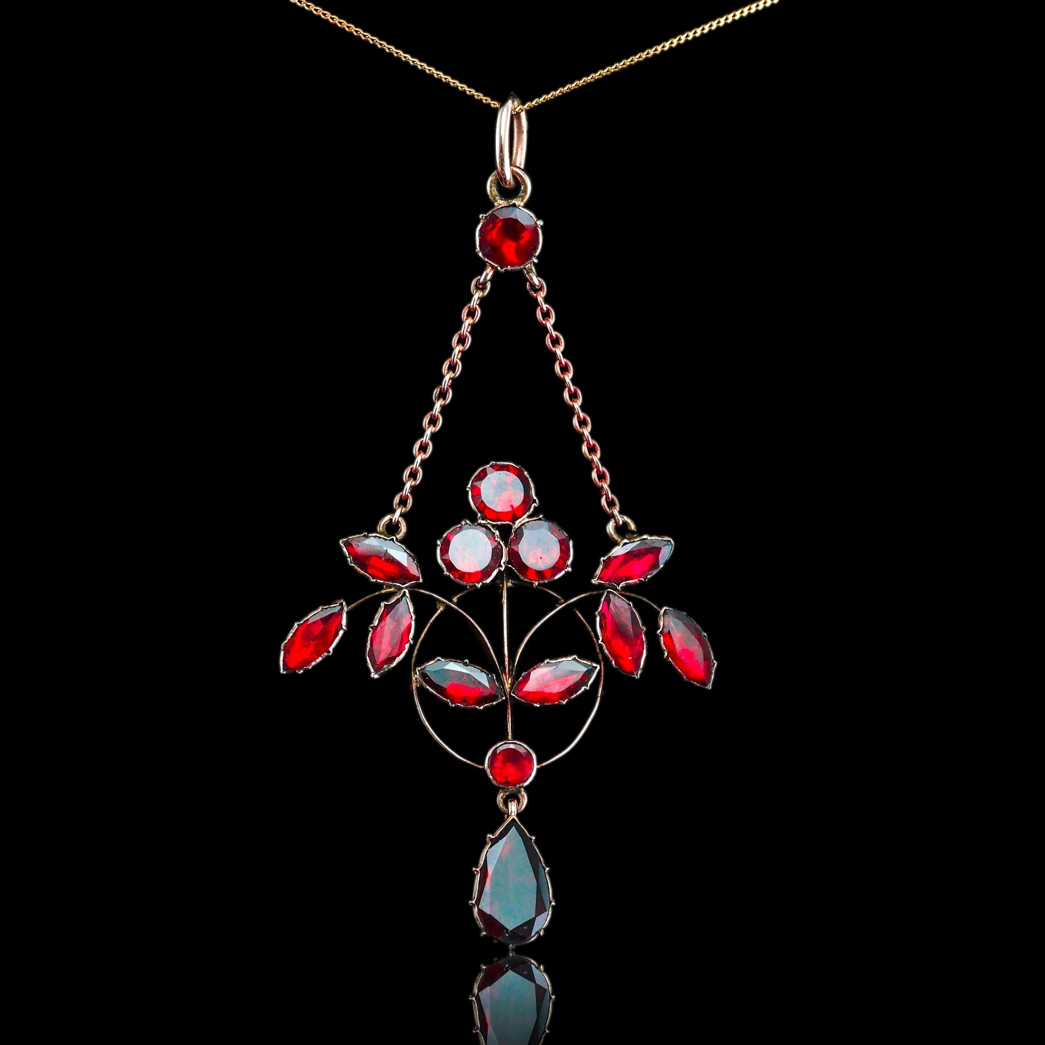 We are delighted to offer this exquisite antique Art Nouveau garnet pendant necklace made c.1900.