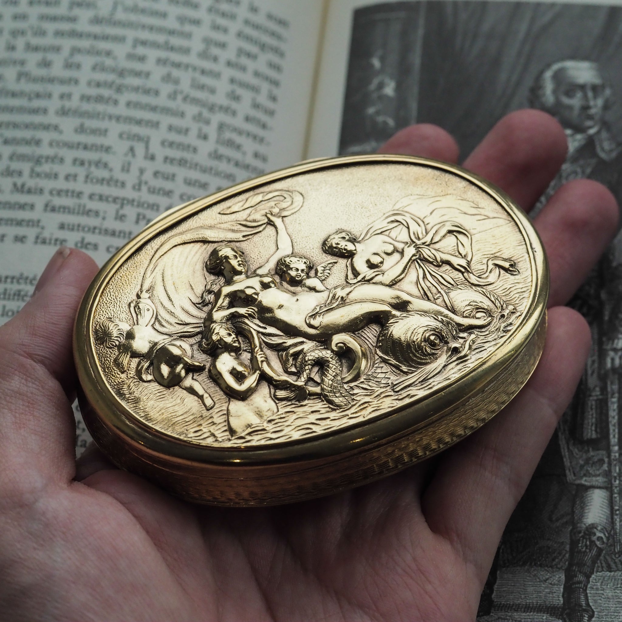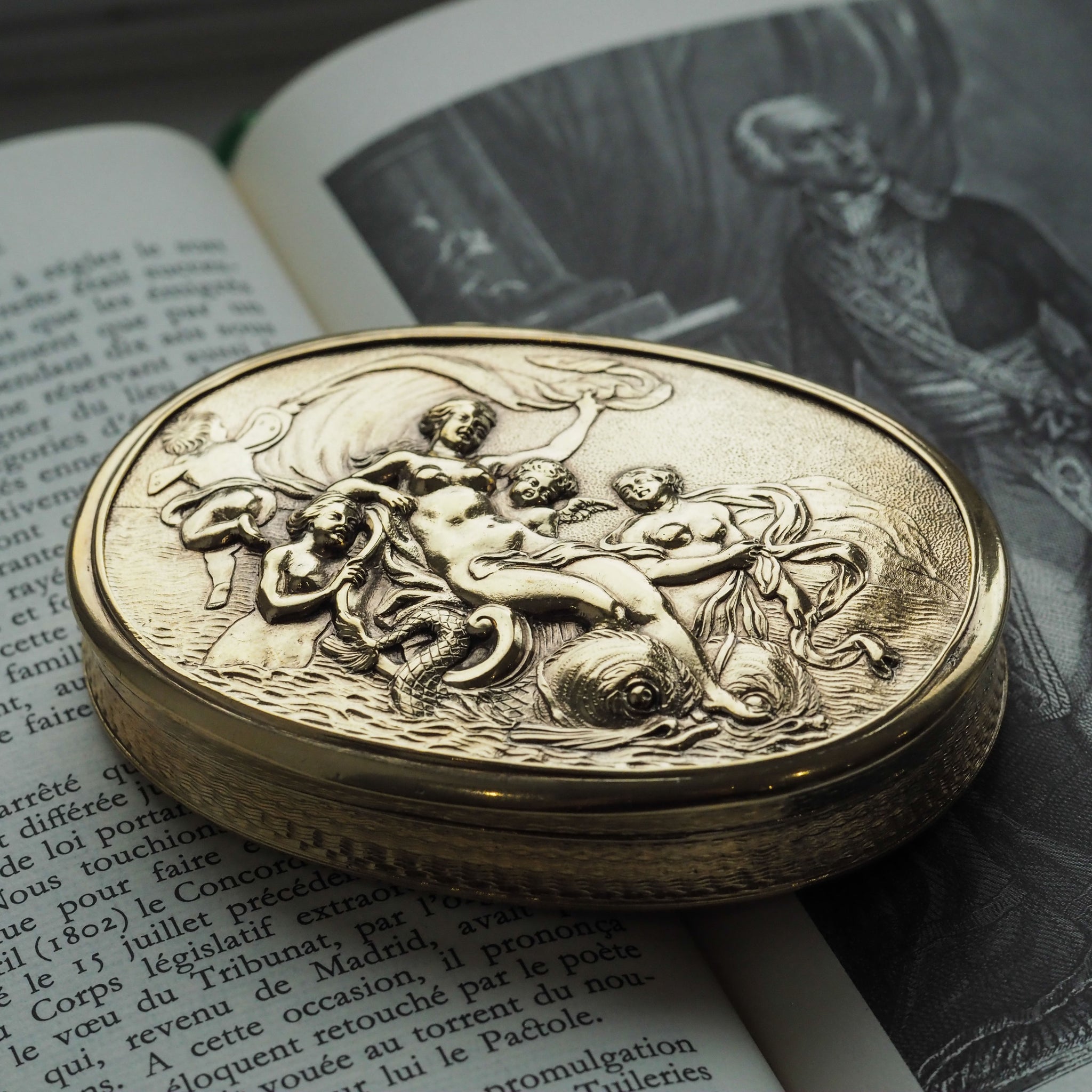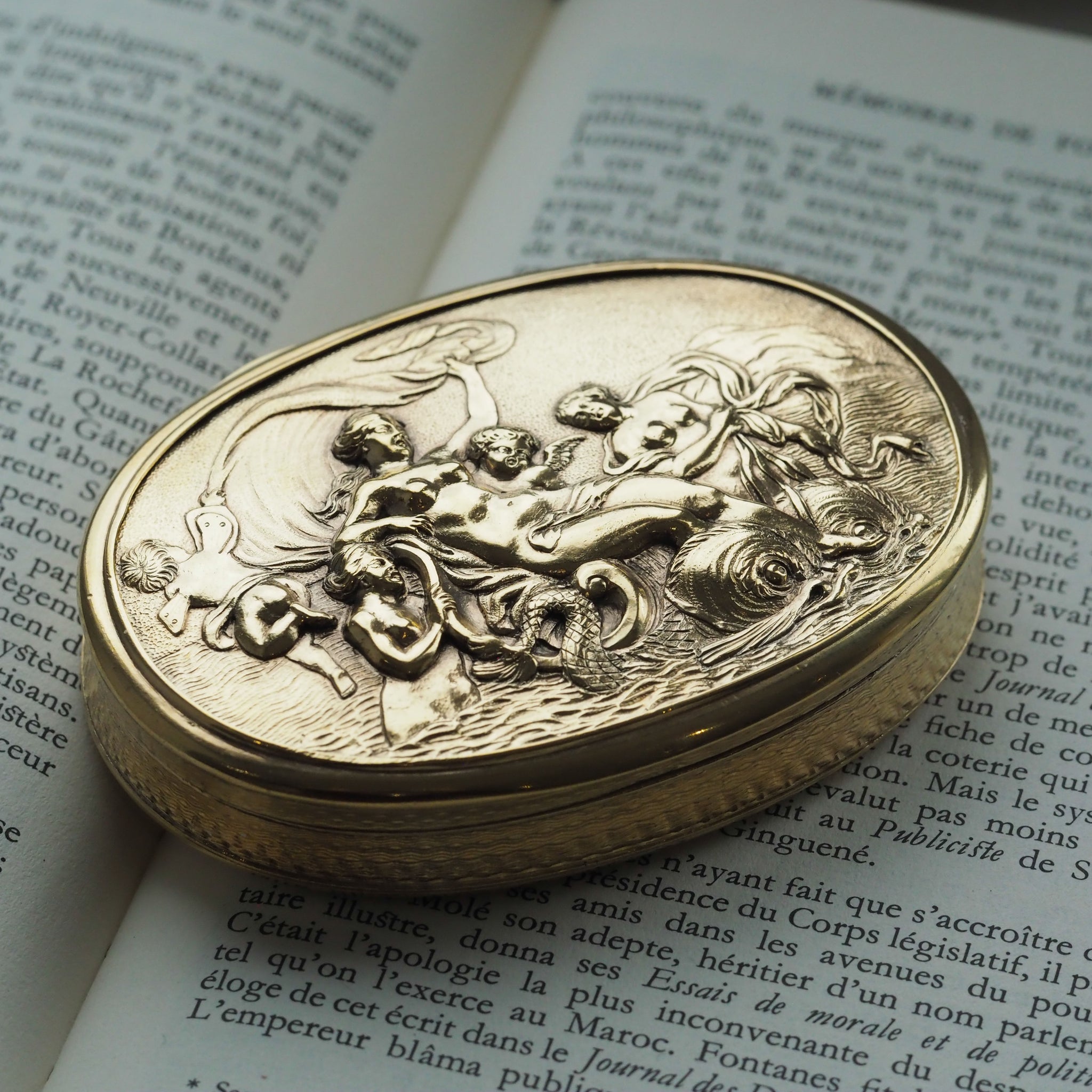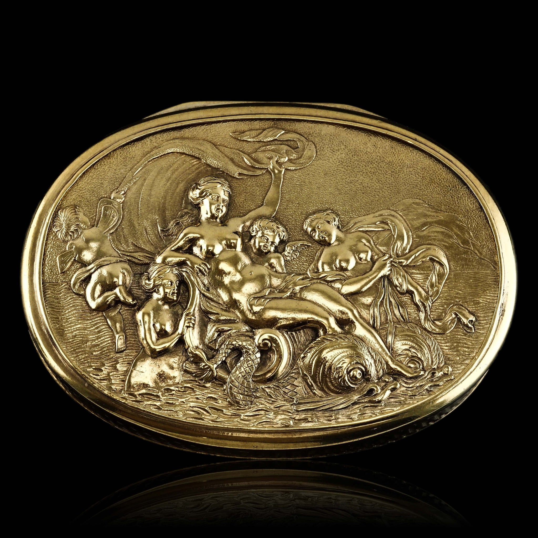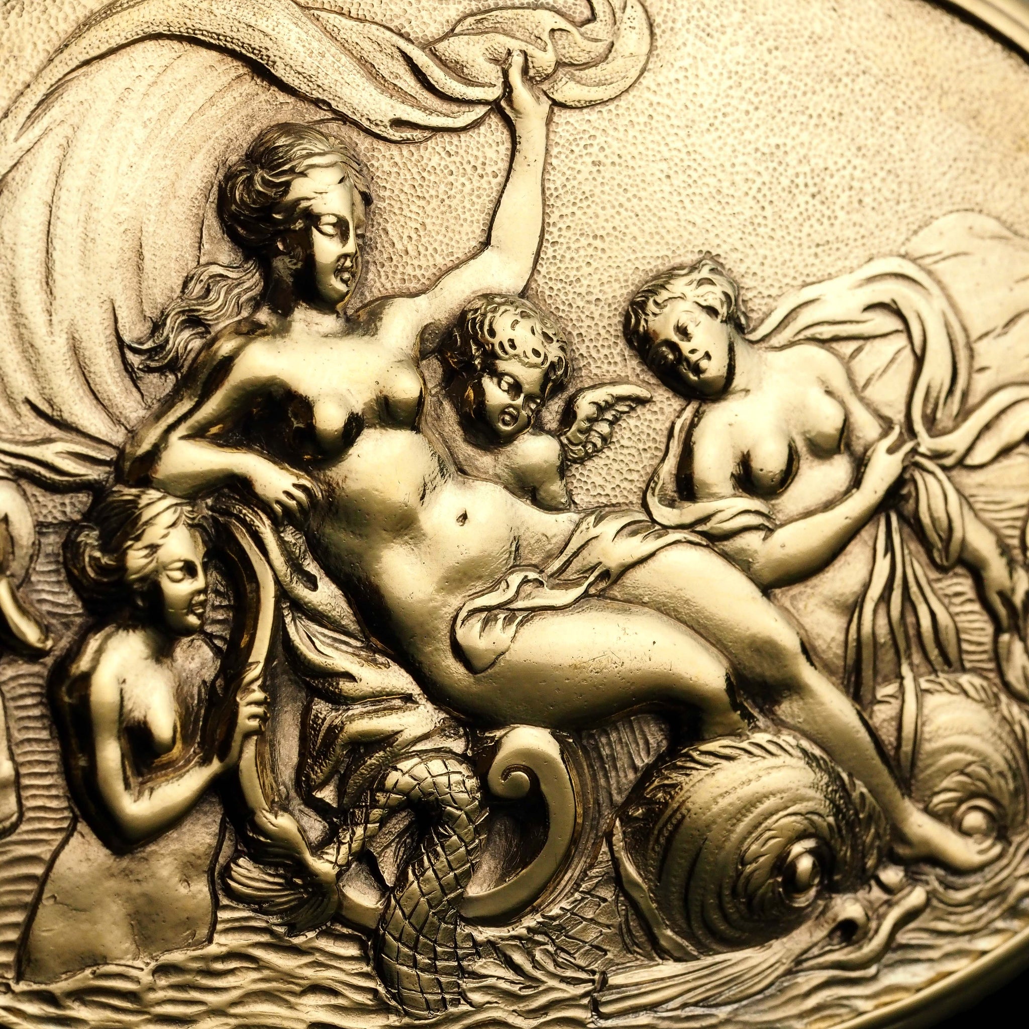 The top scene presents a classical mythological scene of Venus (Venus on the Waves) with embossed, chased and finely stippled decoration. Its superfluous artistry and craftsmanship is further elevated by its distinguished and intricate style of decoration.