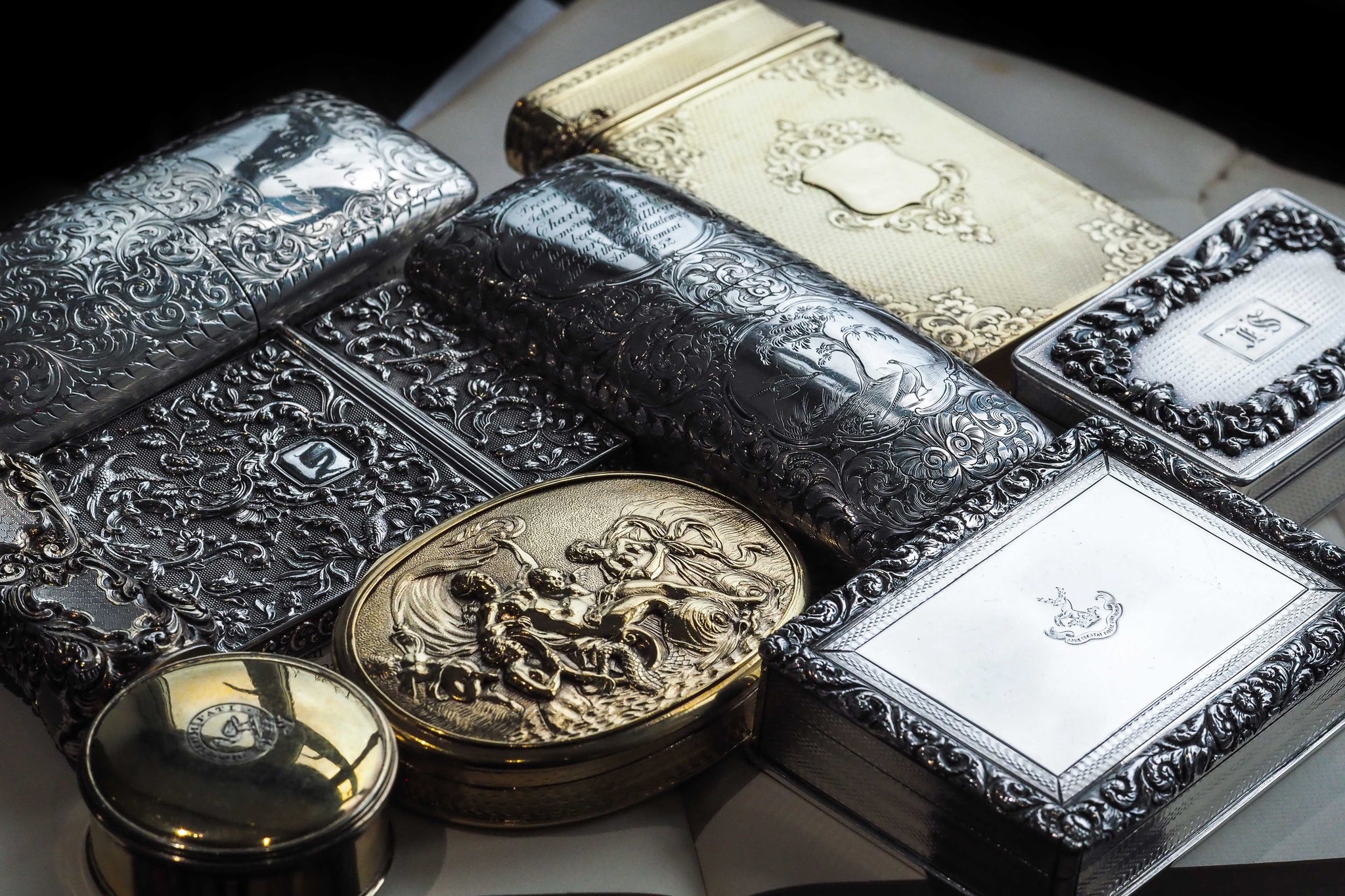 This snuff box presents majestic and spectacular traits on all fronts and is an exemplary piece. Although inconceivable through photos, the heft, quality and gauge of silver upon handling in person is exceptional. Weighing in at 177 grams, the box almost feels like it is a bar of silver, offering an exceptionally reassuring feel in hand.