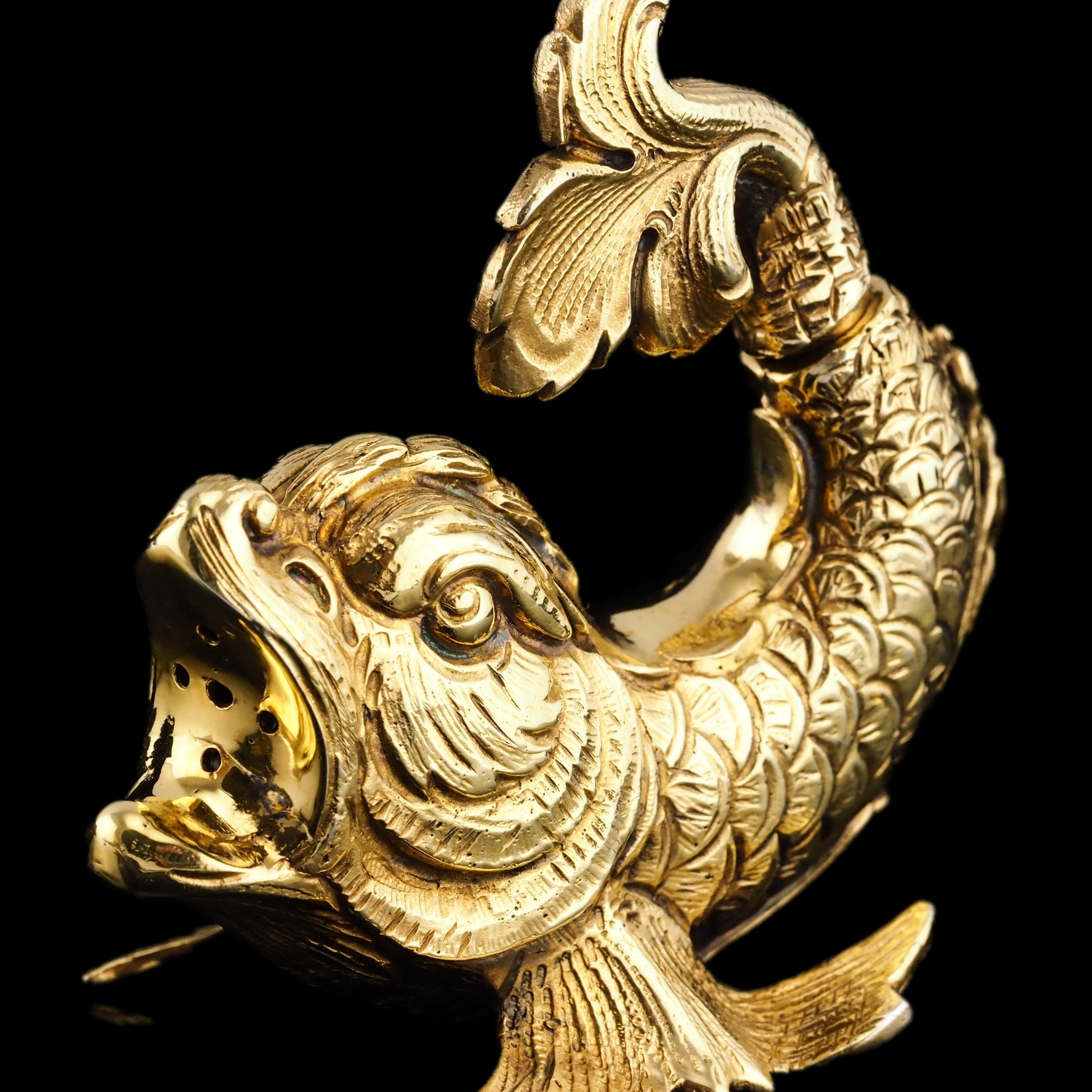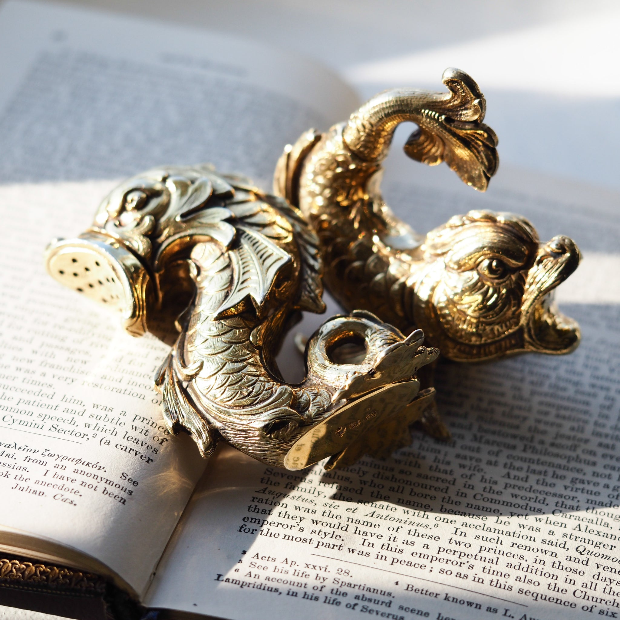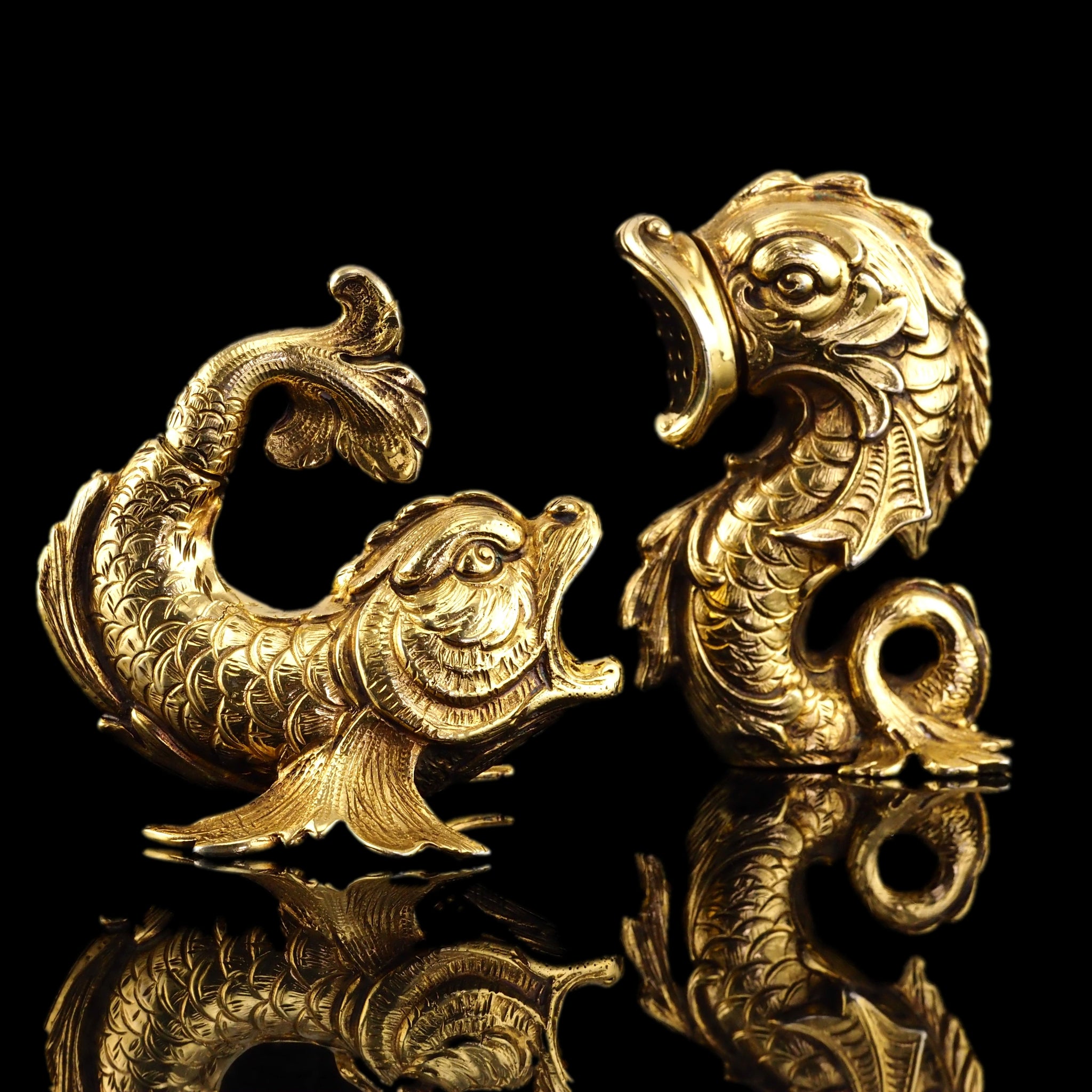 The pair feature a most ornate and wonderful mythological form of fish/dolphins and is made from an excellent gauge of silver.